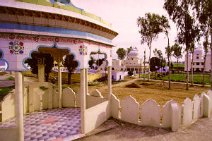 After leaving Muslim brothers Ghani Khan and Nabi Khan Guru Gobind Singh was received warmly by a wealthy landlord and devotee Rai Kalha. Here at Raikot Guru Gobind Singh stayed in hiding for a number of days. Guru Gobind Singh requested Rai Khala to send a messenger to Sirhind to find out about the whereabouts of his family which had been separated from him during their crossing of the river Sarsa. Rai Kalha reported the tragic story of the execution and martyrdom of the Gurus two younger sons and how his mother Mata Gujri had also passed away. Guru Gobind Singh exclaimed that his sons were the gift of Almighty God and had gone back to Him. |