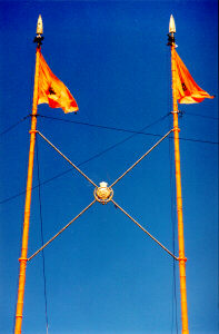 Akal Takht literally means Eternal Throne. It is part of the Golden Temple complex and is situated on the other end of the causeway connected to the Harmandir Sahib. The foundation was laid by Guru Hargobind. It was here that he was ceremonially installed as Guru in 1606. The building of the Akal Takht opposite the Golden Temple has a special meaning. While the Golden Temple stands for spiritual guidance (piri) the Akal Takht symbolizes the dispensing of justice and temporal activity (miri). During the day the Guru Granth Sahib is kept in the Golden Temple, while at night it is kept in the Akal Takht. Traditionally all Sikh warriors sought blessings here before going to battle. During the 18th century while Sikhs were fighting a guerrilla war in the forests they used to gather at the Akal Takht on special occasions such as Baisakhi and Diwali. Here the community used to have general meetings and approve resolutions. The Akal Takht was the oldest of the Five Takhts, but it was destroyed by the Indian Army during its military invasion in 1984. The construction of the new Akal Takht is almost complete with only some interior work remaining.