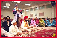 ![]() The sounds of kirtan are heard as people enter and pay their respects before Sri Guru Granth Sahib. |