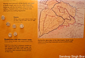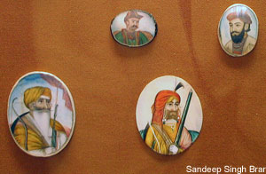 | Sikh history from the time of the Sikh confederacies in the mid 1700's to the rise of the Lahore kingdom of Maharaja Ranjit Singh in the first half of the 19th century. Some of the unique items include miniature paintings on ivory of members of Ranjit Singh's court as well as some Sikh coins. | ||||||||